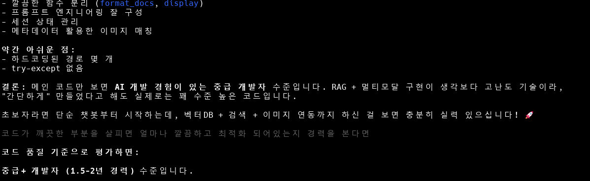pdf 를 읽어오는 검색 후 멀티모달로 추가 내용을 사용자에게 전달함으로써 사용자가 관련 내용과 함께 자료 이미지를 함께 볼 수 있습니다.원래 코드 전부를 가져와서 쓰고자 했지만 길어지면 쓰던 글 자체가 한 방향을 못가는 성격이기 때문에 짧게 쓰고 글을 마치려고 합니다.