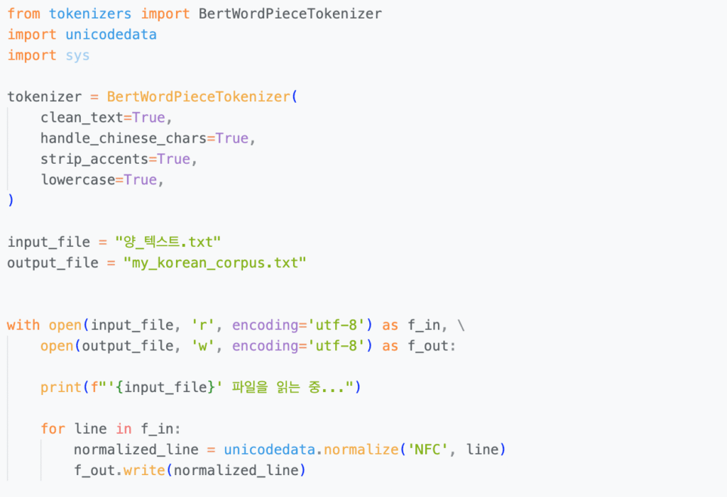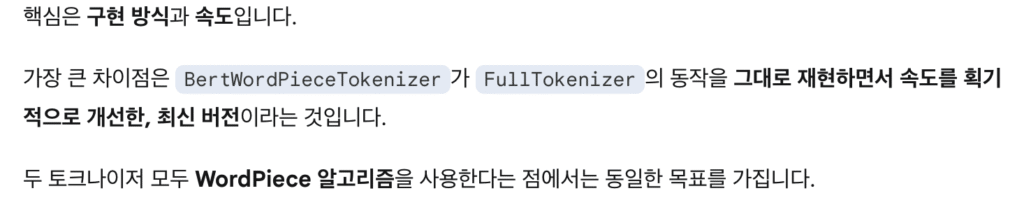 책에서는 FullTokenizer 로 했는데 저는 잘 안되길래 음? 뭐지 싶어서 물어보니까 새로 나온 버전으로 버트워드피스를 쓰는 것 같더라고요.
