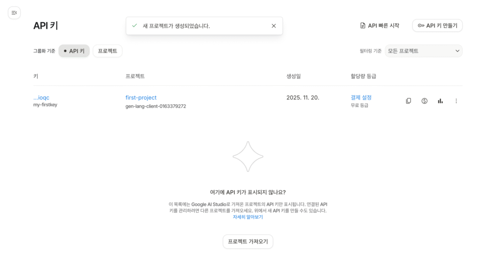이 링크는 api 발급 받아서 불러오기 위한 곳. 인공지능을 부르기 위한 연결고리인 키를 만들기
